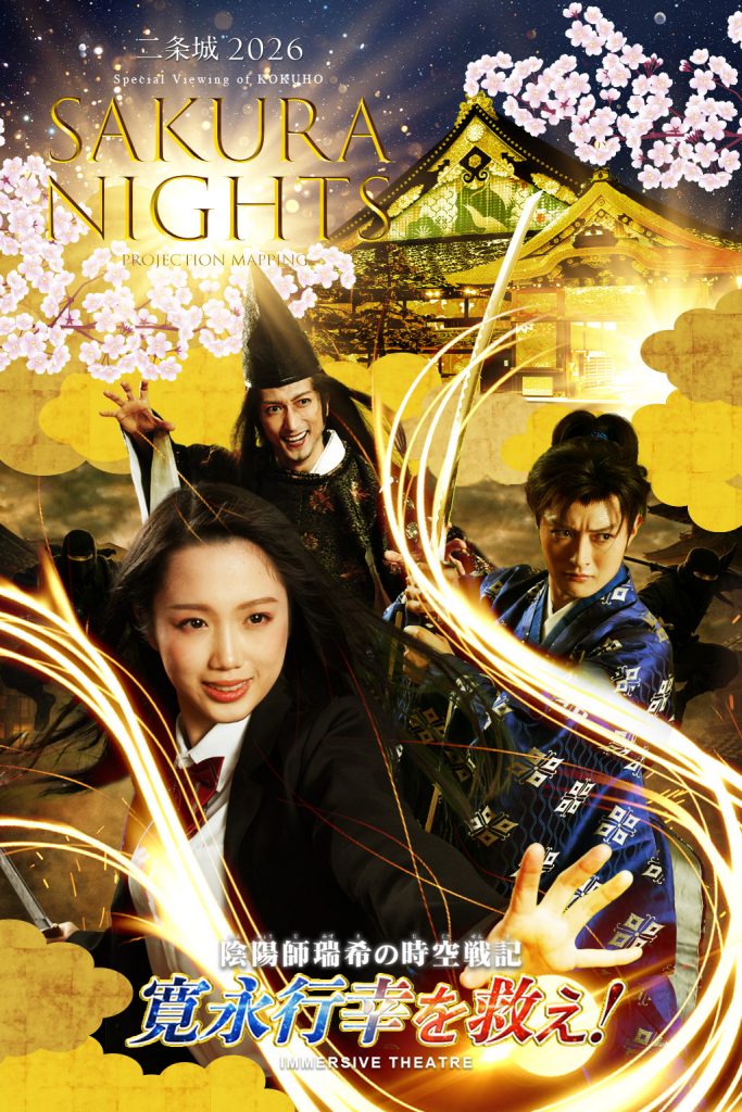 ● 夜間は、二条城桜まつり2026夜間事業実行委員会(株式会社ワン・ワールド、株式会社日商社、株式会社シムディレクトで構成される共同事業体)の主催により、「二条城 2026 SAKURA NIGHTS Immersive Theatre & Projection Mapping」を開催。国宝・二の丸御殿の夜間観覧、安田淳一監督作・演出のイマーシブシアター「城劇」を核として、二の丸御殿車寄のプロジェクションマッピング、桜の園・清流園の桜のライトアップ等を実施します。