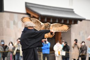 放鷹術の実演、歴史解説、鷹匠・鷹との記念撮影など