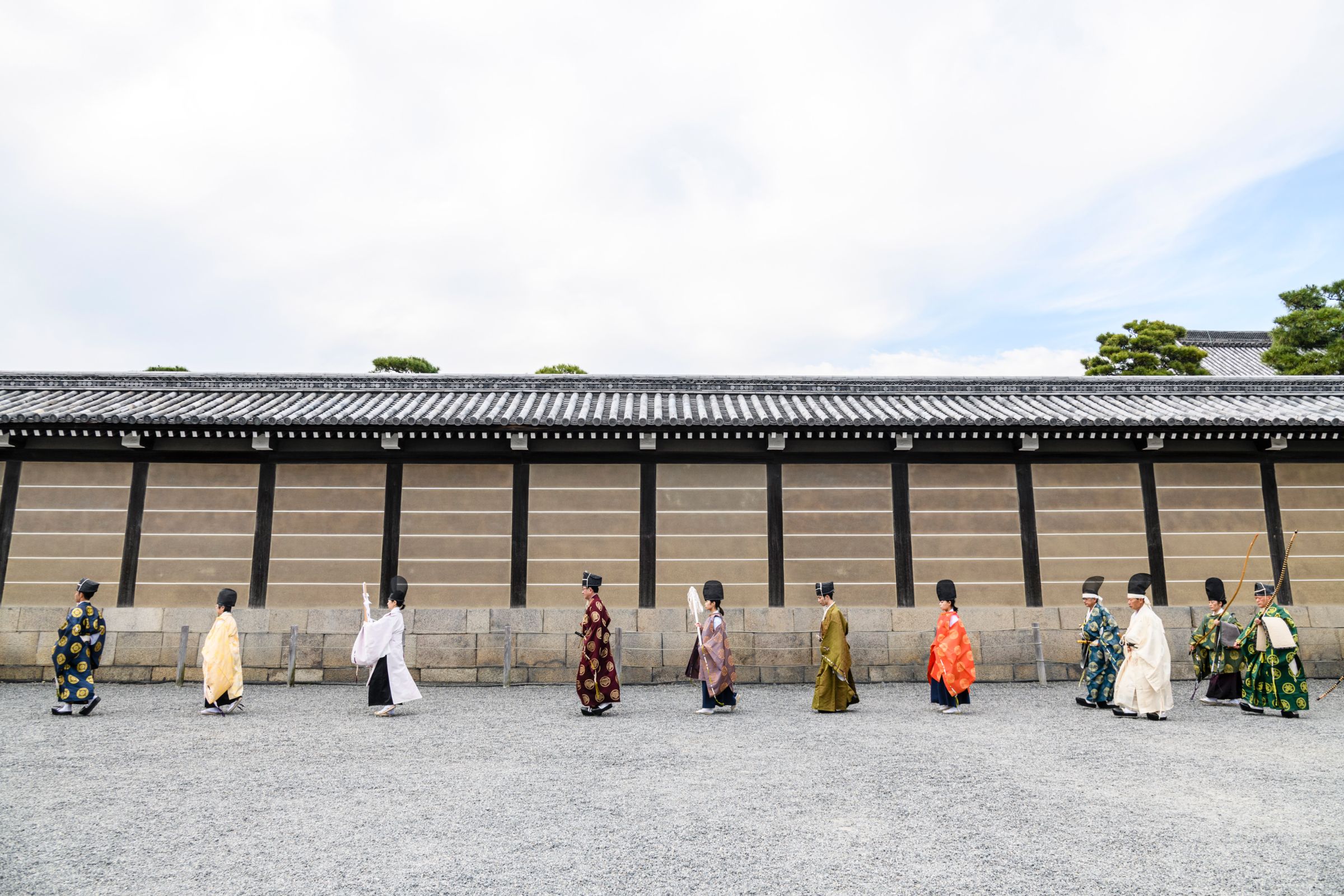 小笠原家は、第五十六代清和天皇( 850~ 881)に起源をもつ清和源氏の家系。初代小笠原長清は、26才のときに源頼朝の糾方師範(きゅうほう)となり、その長男、長経は源実朝の師範となりました。「糾方」とは、弓術と弓馬術、礼法を意味し、小笠原流は、一子相伝でこれらを継承しています。江戸時代になると、小笠原経直は徳川家康に招かれ、徳川秀忠の弓馬術礼法師範となり、徳川家の人々に加え、諸大名や旗本にも指導。幕府の弓馬術礼法の師範を務めました。現在は二条城にて御一門による「流鏑馬の型」などを特別に披露していただいています。